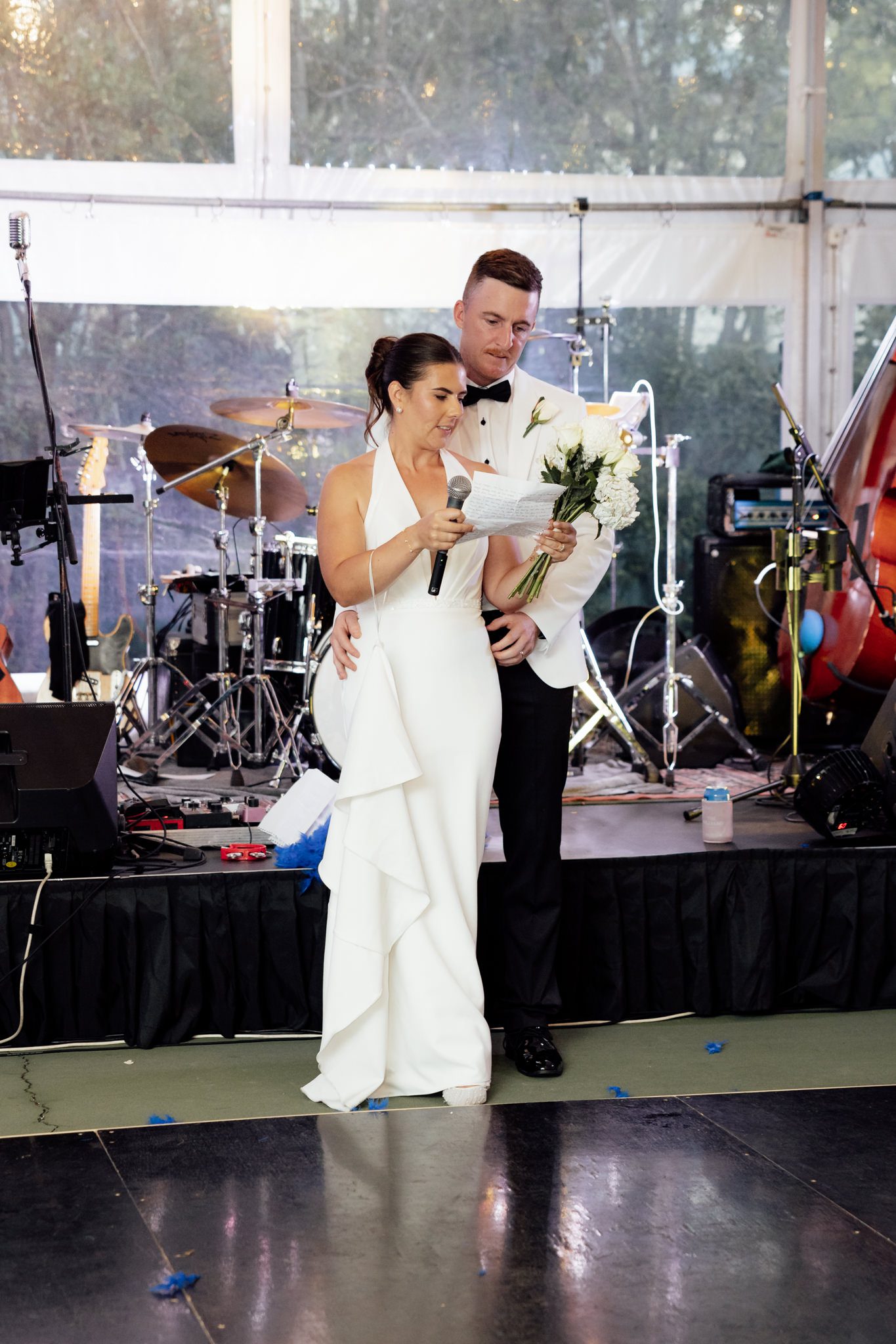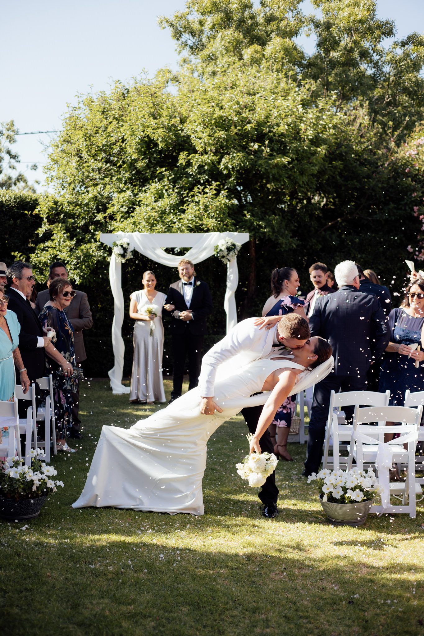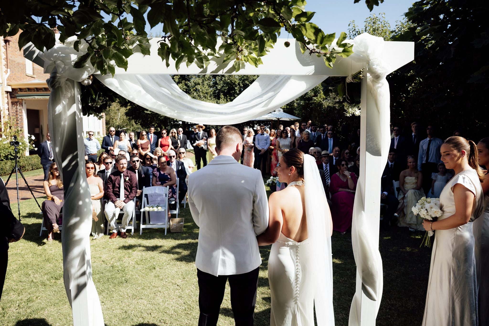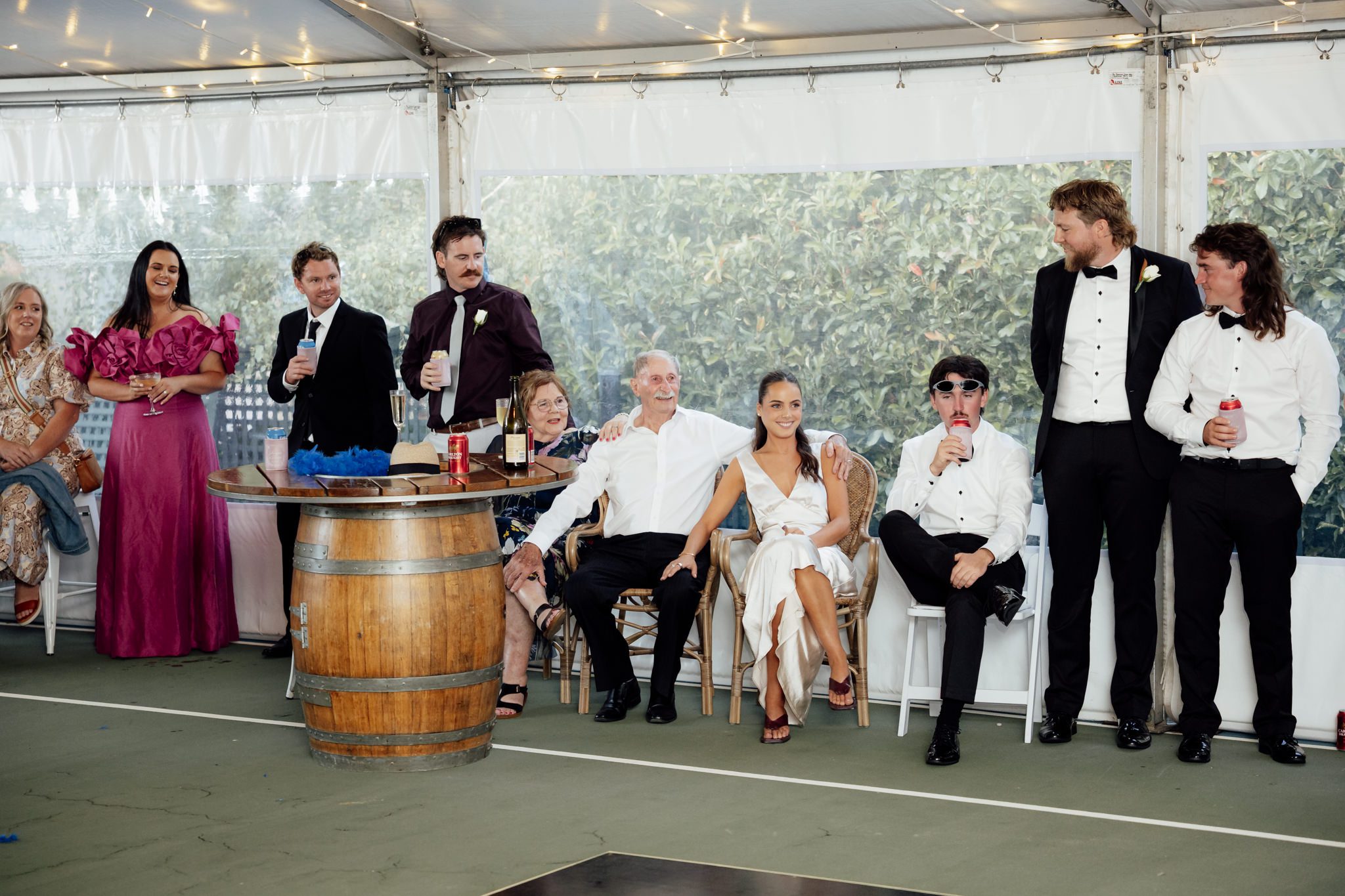 From there, the day moved to Paris’ grandparents’ property in Newtown, where they exchanged vows surrounded by the people who mean the most to them. With relaxed garden-party vibes for canapés and the reception, the whole afternoon felt warm, joyful, and effortlessly fun.