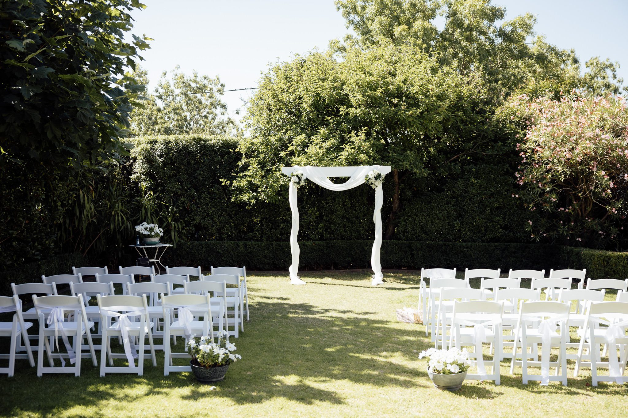 Elegant garden styling with soft pinks and whites.
