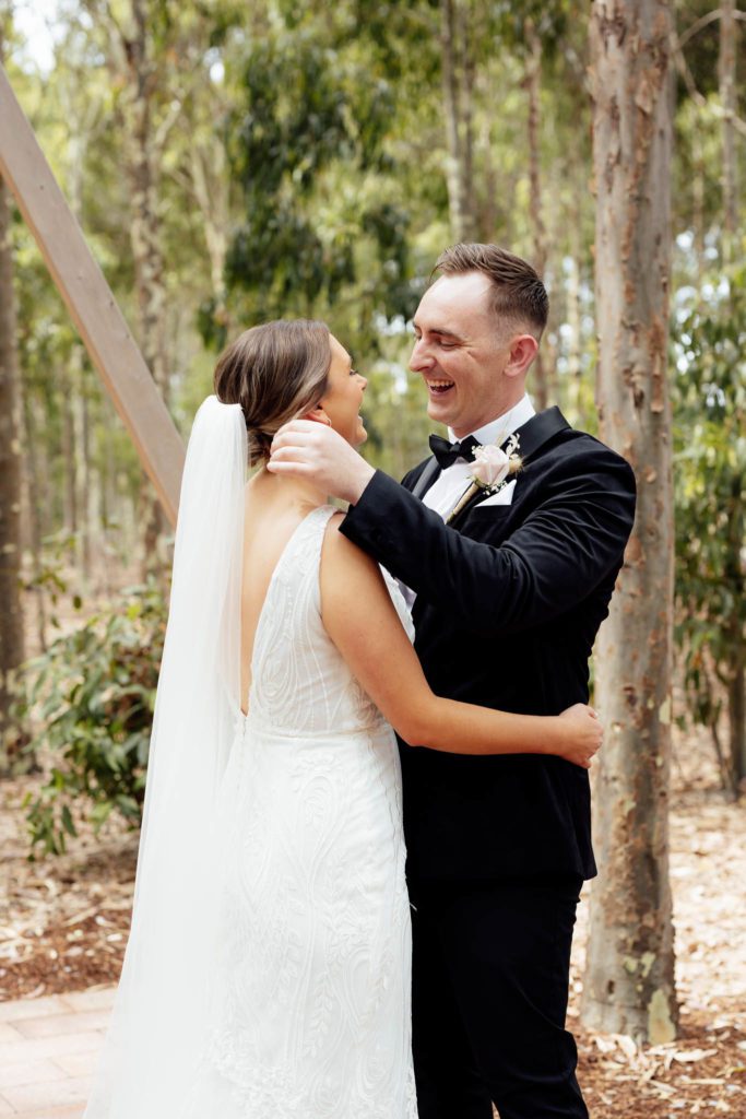 Seeing each other in our first look and also seeing all our friends and family smiling and laughing together as we celebrate our love with them all. Also can’t wait for a nice cold drink and a boogie on the dance floor!